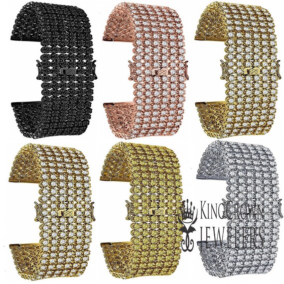 6 Row Iced Out Custom Replacement Watch Band Bracelet 14k Gold Etsy